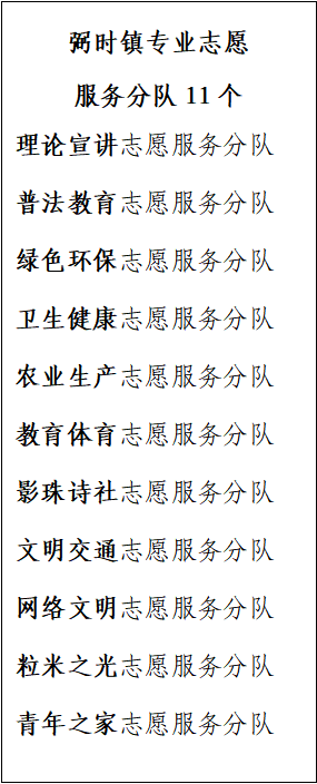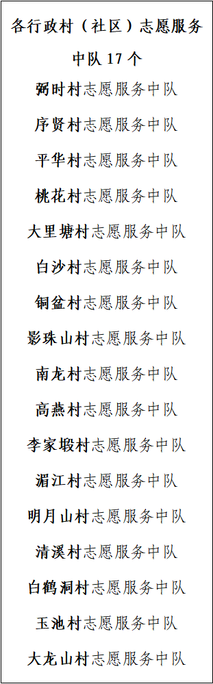 为推动习近平新时代中国特色社会主义思想更加深入人心,进一步加强改进农村基层宣传思想文化工作和精神文明建设工作,创建汨罗志愿者之城,根据《中共中央办公厅印发<关于建设新时代文明实践中心试点工作的指导意见>的通知》(厅字〔2018〕78号)、省文明办关于《印发<湖南省新时代文明实践中心建设试点工作方案>的通知》(湘文明委〔2018〕9号)和汨罗市关于《印发<汨罗市新时代文明实践中心建设工作实施方案>的通知》要求,结合我镇实际,成立弼时镇新时代文明实践所和弼时镇志愿服务大队,下辖17个行政村文明实践站,弼时镇志愿服务大队下辖弼时镇11个专业志愿服务分队和17个行政村志愿服务中队,请各村以志愿服务为宗旨,以文化人,树立良好社会风气为目标,迅速配齐配优村文明实践站和志愿服务中队和专业志愿服务分队人员。