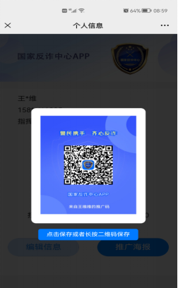 步骤4:生成个人专属二维码,保存至相册,转发微信朋友圈即可推广