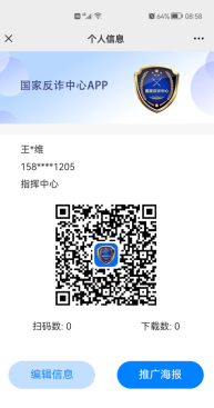 各村(社区)要充分发挥党员、组长、“两代表一委员”在APP注册实名认证工作中示范带头作用,利用广播、网络、微信等各类宣传媒体,广泛发动群众下载“国家反诈中心”APP并进行实名注册(重点强调上级考核的是注册实名认证数,所以推广一定要实名认证,注册地一定要选岳阳汨罗),大力营造全民反诈浓厚氛围,全力遏制电诈案件高发势头。各村(社区)要明确一名联络员负责此项工作,收集好本辖区群众安装注册“国家反诈中心”APP人员信息及截图或照片并上报。各干职工、各村(社区)干部扫汨罗市推广二维码(如下图),并填写自己的姓名及手机号码生成个人专属推广二维码,再让群众扫干职工的个人专属推广二维码下载注册并完成实名认证即可。