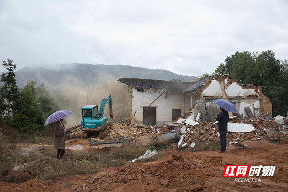 11月27日8点,挖机冒雨开进大里塘村赵家冲,随着阵阵“轰隆”声响,顷刻间,居民任志辉一幢80余平米杂屋房应声而倒。至此,长沙经开区汨罗产业园(“飞地”园)一期规划区域内,650栋房屋,3800多座坟,涉及群众2100人、腾地近5000亩的征拆工作全面画上句号。