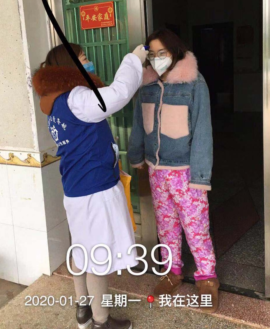 每天两次(上午、下午各一次)镇村干部联合卫生院医生上门对武汉(湖北)返乡乡友,进行体温检测,填写具体体温数并要签字。