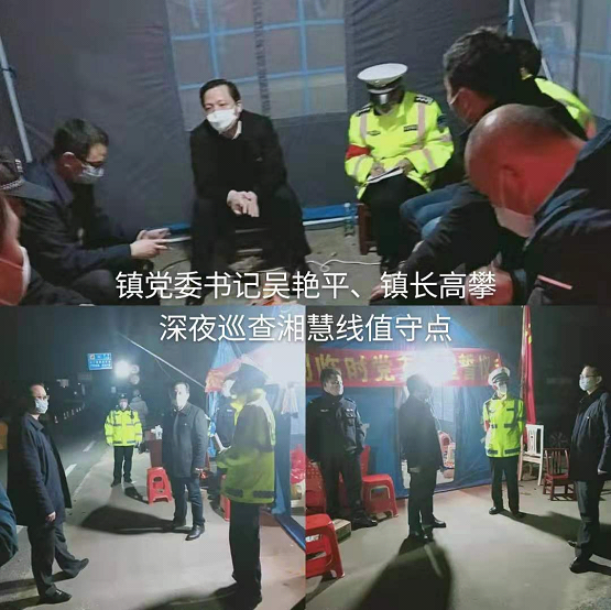 昨夜深夜,弼时镇党委书记吴艳平、镇长高攀在调度完疫情防控工作之后,又马不停蹄地来到湘慧线长湘桥路口值守点,看望值守在一线的工作人员,详细了解值班轮岗、工作条件、登记安排等情况。吴艳平强调,要守住底线,推介成果,创造典型,公路、交警、派出所、卫生院、村级等部门联动继续做好下段工作。在值勤值守中要按时到岗,规范要求,忠诚履职、文明执勤,务必做到“六个统一”,即统一报表、统一排好班、统一好各部门职责、统一做好值班记录、统一相关纪律要求、统一按指令要求值守。高攀就当前值守工作进一步部署,要求统一调度,科学安排好值班;值班记录详尽明了;各部门到岗到位,尽职尽责;后勤保障到位;巩固成果,推出报道典型事例。