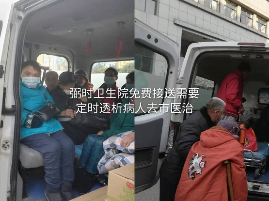 防控新型冠状病毒期间,弼时卫生院为解决公交停运给透析病人带来的不便,出动120急救车,免费将病人送至汨罗治疗,并安全接回。