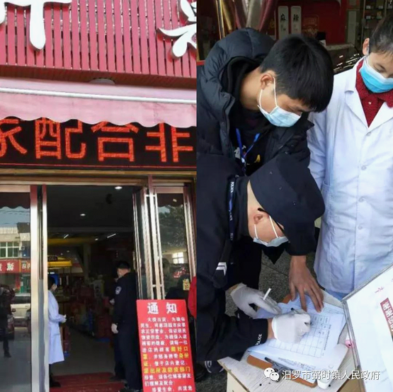为进一步落实防控责任,弼时镇执法大队每日组织人员对我镇商店、超市、药店进行巡查,检查店内每天定期消杀、进店测温、来客登记情况,确保人民群众的安全健康。