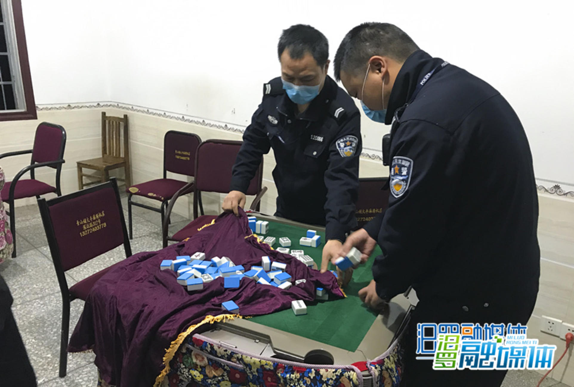 汨罗融媒体讯(记者周敏通讯员湛韬) 3月11日晚,姜时镇政府联合当地派出所、工商所、市场监管等单位干警和执法人员,深入集镇、社区、村居进行防疫排查,对辖区内麻将馆、网吧、KTV等娱乐场所一律关停、对村民用顾疫情聚集在一起打麻将赌博等行为进行严肃查处。