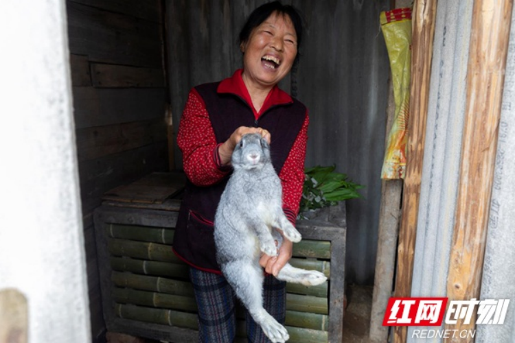 汨罗市汨罗弼时镇大龙山村村民王伯芝新养的兔子。