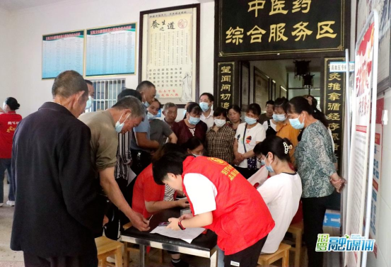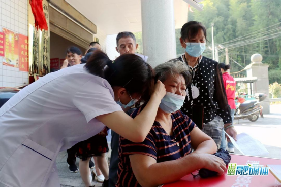 6月8日一早,弼时镇玉池片区来了一 群特殊的"客人"--汨罗市乡村振兴局、 可孚医疗科技股份有限公司、省计量检测研究院的工作人员和医护人员一行来到这里,为该镇5个已脱贫村捐赠电子血压计和红外体温计等医疗器具,并开展义诊活动,为山村村民送来健康和服务。