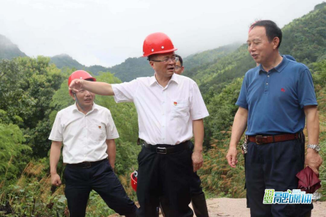 喻文(中)督查弼时镇平华村新屋组地质灾害治理点防汛工作