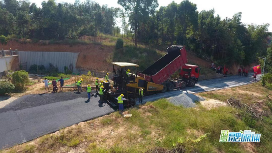9月19日,记者来到汨罗市弼时镇湄江村樟树坝水稻基地资源产业路施工现场,只见运料车、摊铺机、压路车在路面上有序施工,一条宽敞平坦的柏油马路正徐徐铺开……