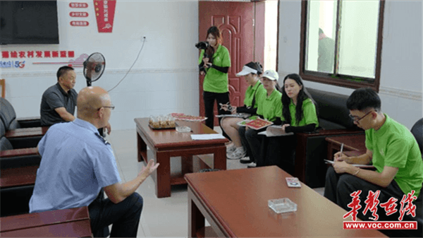 7月17日,学习团前往汨罗市弼时镇的序贤村进行实地调研,并与当地村委会委员彭东明、“骆驼红”党史宣讲队队长刘果进行深入交流。作为湖南省乡村振兴示范村,序贤村村委通过党建引领和红色赋能,推动村里各方面建设,村民自发组建的“骆驼红”志愿服务队已成立4年多,致力于服务社会和大众。