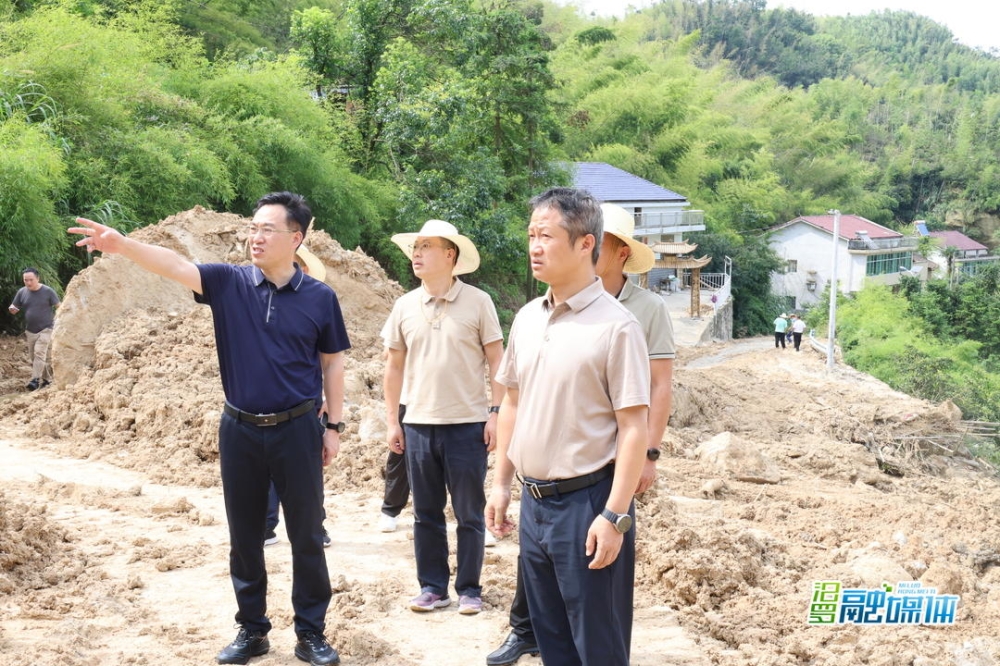 市委副书记、市长林恒求(右一)实地察看弼时镇玉池村戴家组灾害现场