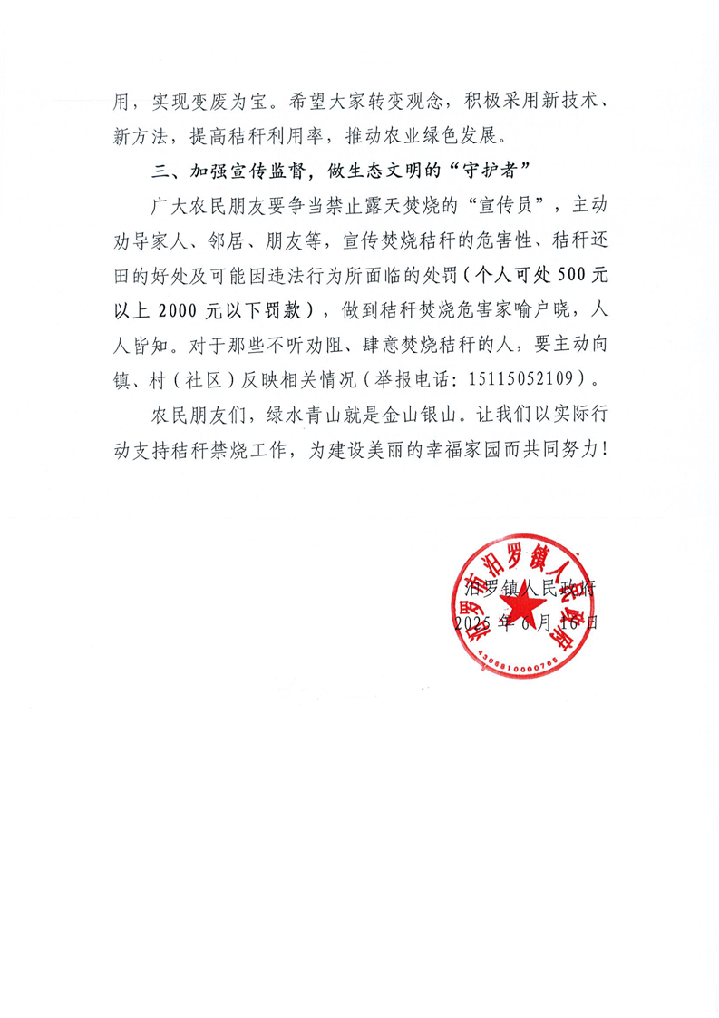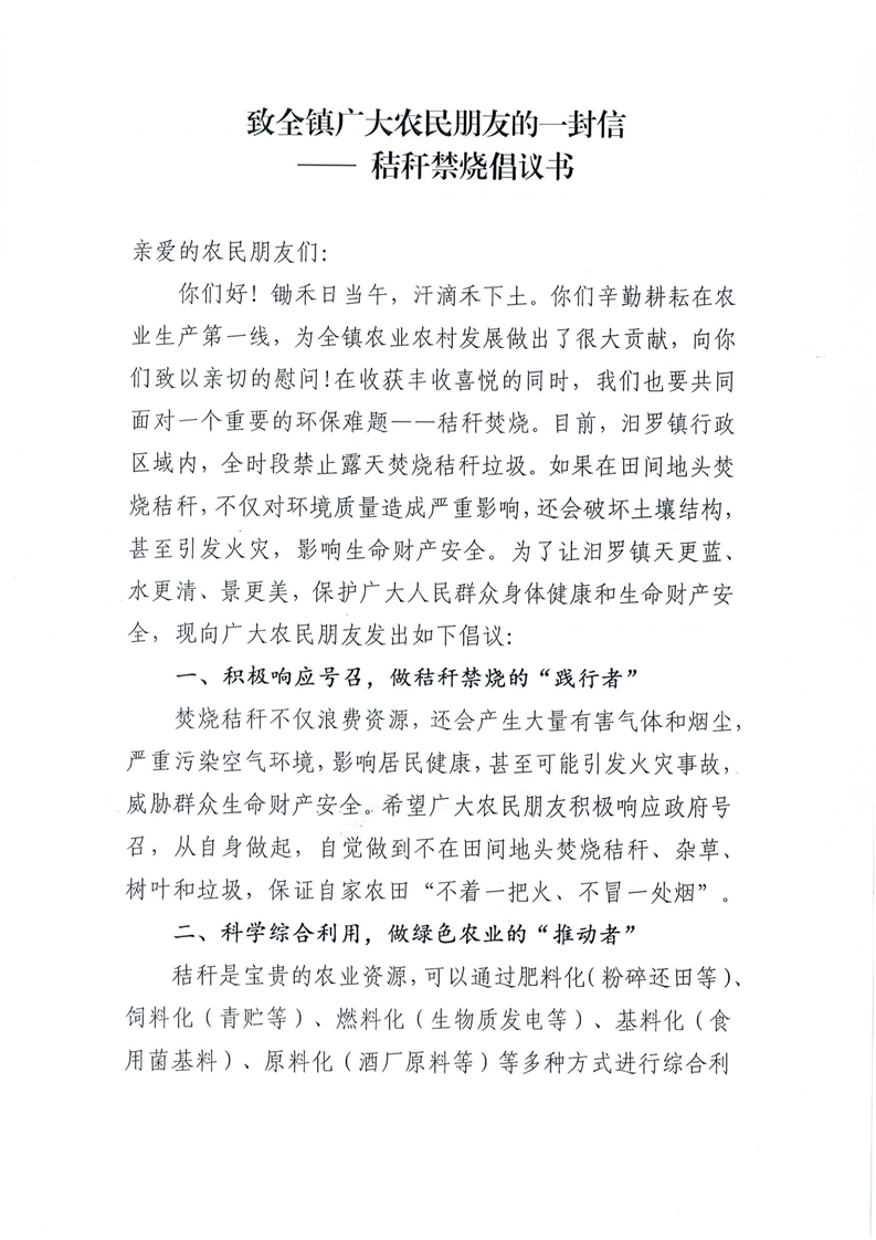 致全镇广大农民朋友的一封信(秸秆焚烧倡议书)