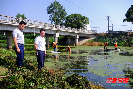 “这样的活计顶多干到10点左右,再晚日头就太烈了,人晒不得。”汨罗镇水利站站长胡雄说,这四名被请来打捞河面垃圾和浮萍的工人已经干了将近一周,要完成预定的工作任务,“估计还得一两个星期。”而这项工作,是治理一道避洪渠的重要措施之一。