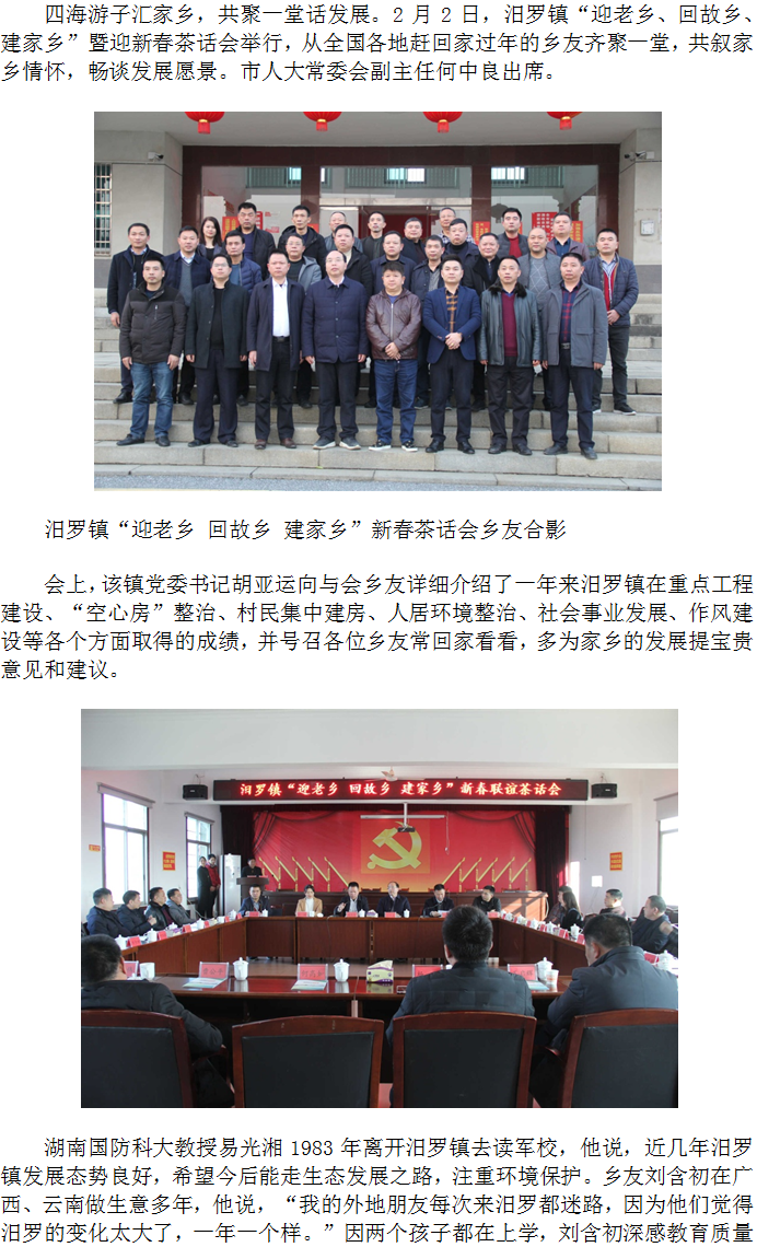 汨罗镇举办“迎老乡、回故乡、建家乡”暨迎新春茶话会