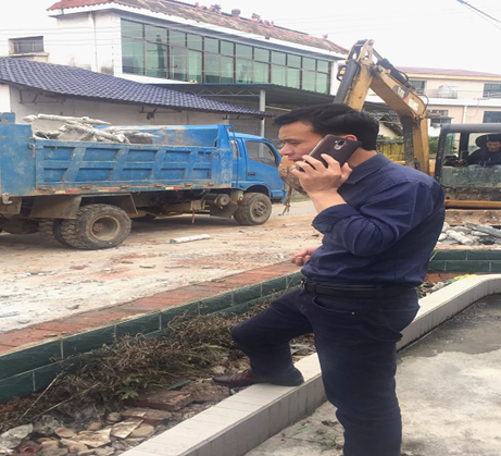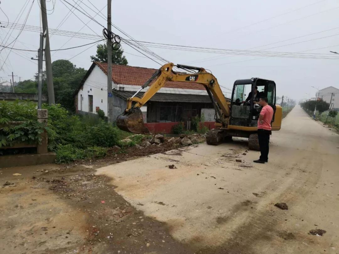 江景村党总支书记胡智慧同志亲自指挥G240沿线示范屋场内拆除围墙工作
