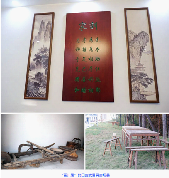在龙塘大屋居民集中建房点一栋名为“百川居”的田园式居民房里,虽是新居,但“忠孝为先,耕读为本。手足相助,克己厚任。乐善好施,和睦相邻”的家规家训已然悬挂于客厅墙上,呈现出龙塘大屋传承有序的家族精神;在书房,墨香弥漫,挥毫泼墨的场景仿佛就在眼前;一个对外的房间里,蒸笼、筛子、木盆、车子、炭盆等传统农家农用具整齐排列,散发浓浓的农耕时代气息;临房外面一片草地上,八仙桌摆放整齐,届时,诗人、学者们可以在此品茶,体验农家风味特色小吃……