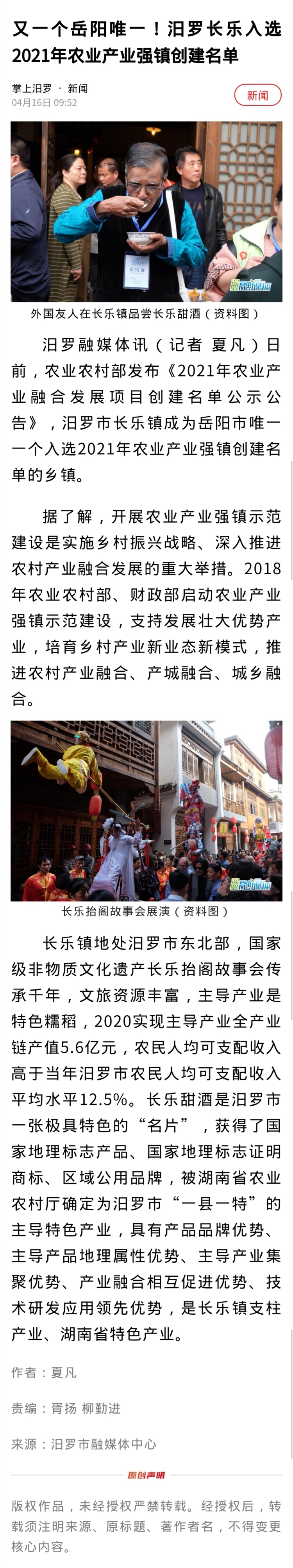 又一个岳阳唯一!汨罗长乐入选2021年农业产业强镇创建名单