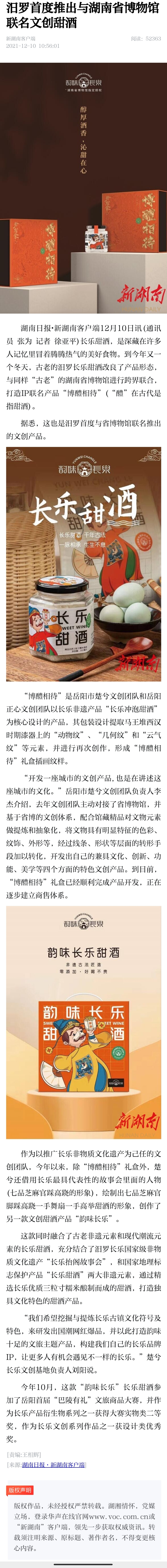 汨罗首度推出与湖南省博物馆联名文创甜酒