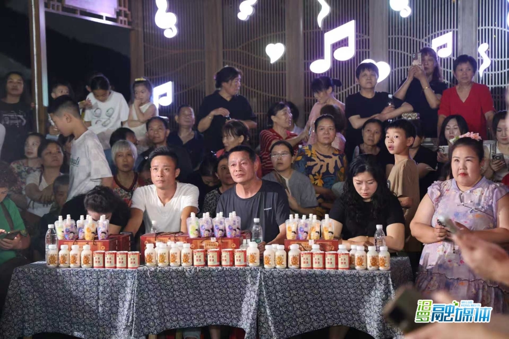 随后,曾参加汨罗江大舞台乡镇擂台赛的长乐镇战队队长艾咏担任主持人,他登台献唱多首动人歌曲,迅速点燃全场气氛。当晚演出阵容多元,不仅汇聚长乐镇的民间歌手,还特邀屈子祠镇的嘉宾助阵。活动同步进行线上直播,观众纷纷点赞留言,线上线下热烈互动。现场更设有“全民K歌”报名区,喜爱唱歌的群众可现场报名,准备好曲目后由主持人适时邀请登台,让普通群众也体验一把“歌手瘾”。