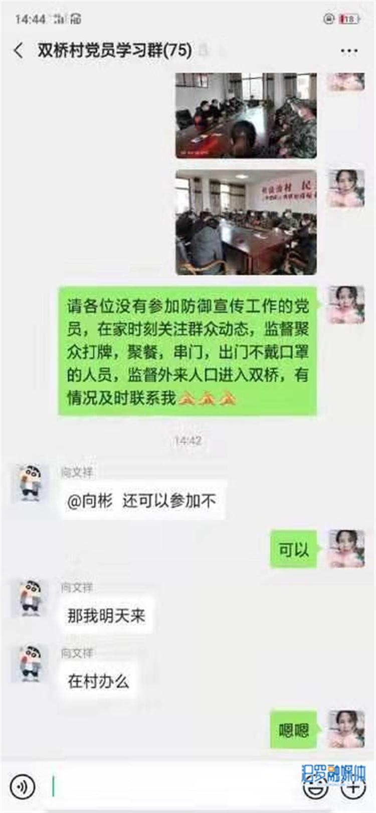 7名90后、1名80后女党员、1名越战老兵,组成了一支特别的宣传防疫队。2月1日,在三江镇双桥村,这支特别队伍正式上线,负责保卫村庄,劝退外来人口,监督村民不要聚众打牌、聚餐、串门,提醒他们佩戴好口罩。
