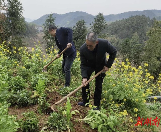 鸟在空中飞,人在花中走,鱼在水中游,蜂在身边舞……位于大山深处的三江镇是汨罗市脱贫攻坚重点乡镇之一。走进八景村,驻村第一书记兰若龙正在田间指导春耕生产,“趁着春耕时节,镇村干部深入田间地头,忙着防疫和脱贫‘两线作战’。”