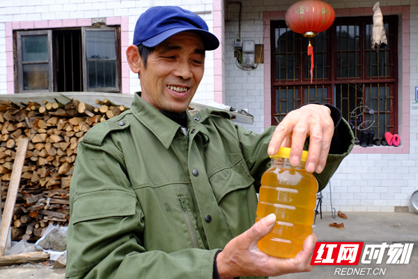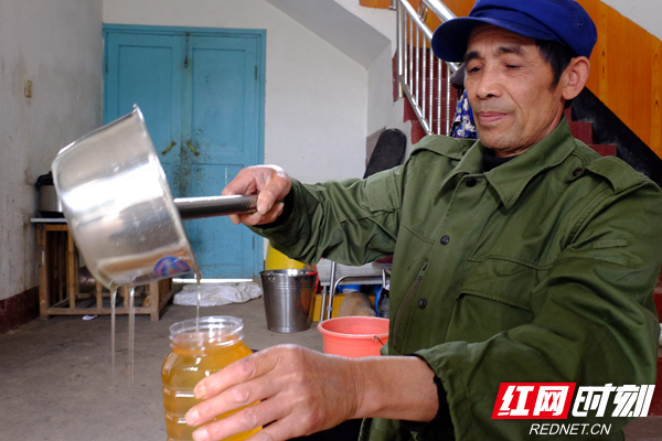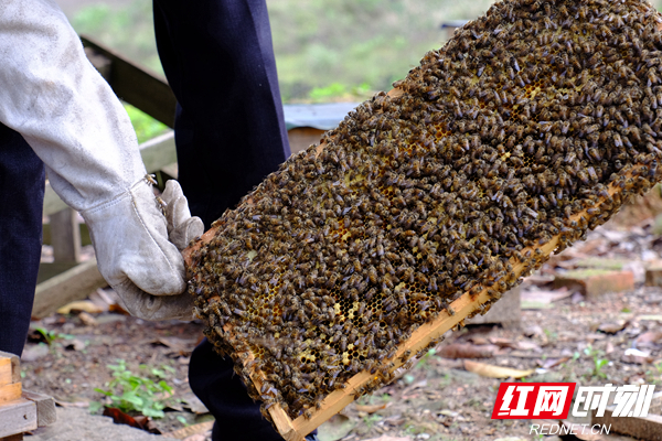 红网时刻岳阳4月24日讯(汨罗融媒体记者 胥扬)4月22日,三江晴。趁着日头正好,汨罗市三江镇八景村村民杨远波又跑到2公里以外的横洞,去看分出去的40多箱蜜蜂。“现在正是分蜂的时节,每天都要去照看一下。搬运蜂房时动作要轻,不能惊扰到它们……”说起养蜂,杨远波一肚子的话,他将小小的蜜蜂看得重。在八景大山里,蜜蜂给这个曾经艰难的家庭带来重生的希望,带来甜蜜的生活。