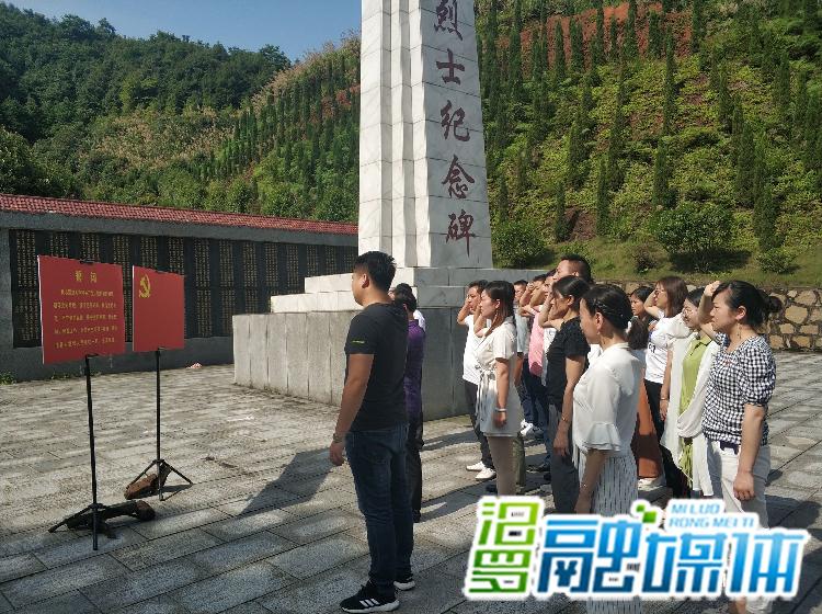 在革命烈士纪念碑前,全体党员庄严肃穆,向为革命事业英勇牺牲的烈士三鞠躬并默哀。随后,全体党员面向党旗,高举右拳,重温入党誓词。