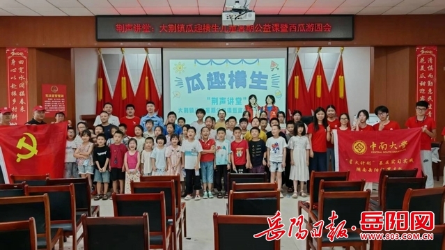 本次活动由大荆镇党委统筹协调镇派出所,联合中南大学“星火计划”实习团队10名实习生及5名预备党员志愿者,共同举办“荆声讲堂”暑期公益课程暨“瓜趣横生”主题游园会,营造出“党委带头做,党员跟着做,群众同参与”的良好氛围,谱写出“大手牵小手、共筑成长路”的温情乐章。
