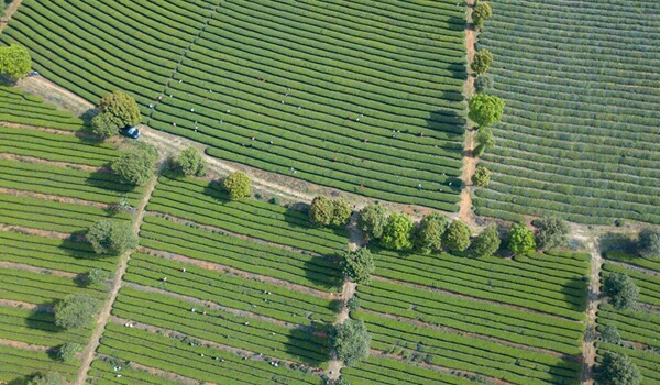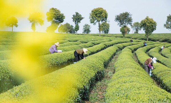 踏进汨罗屈子祠镇新茶村,眼前是一望无际的绿:整整齐齐的茶树并在一起,一行行,一簇簇,像一条条绿色的波纹荡漾在村舍房屋间。