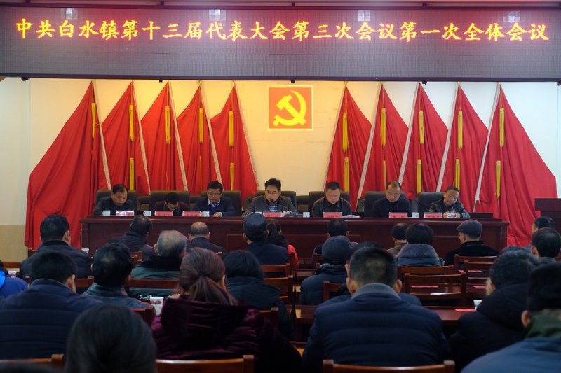 12月24日,中国共产党白水镇第十三届代表大会第三次会议在白水镇政府举行。会议应到代表136人,实到127人,符合法定人数。会议审议通过了白水镇《党委工作报告》《纪委工作报告》,报告了中共白水镇十三届二次会议提案的办理情况,各村(社区)党总支书记分别在会上述职并测评。