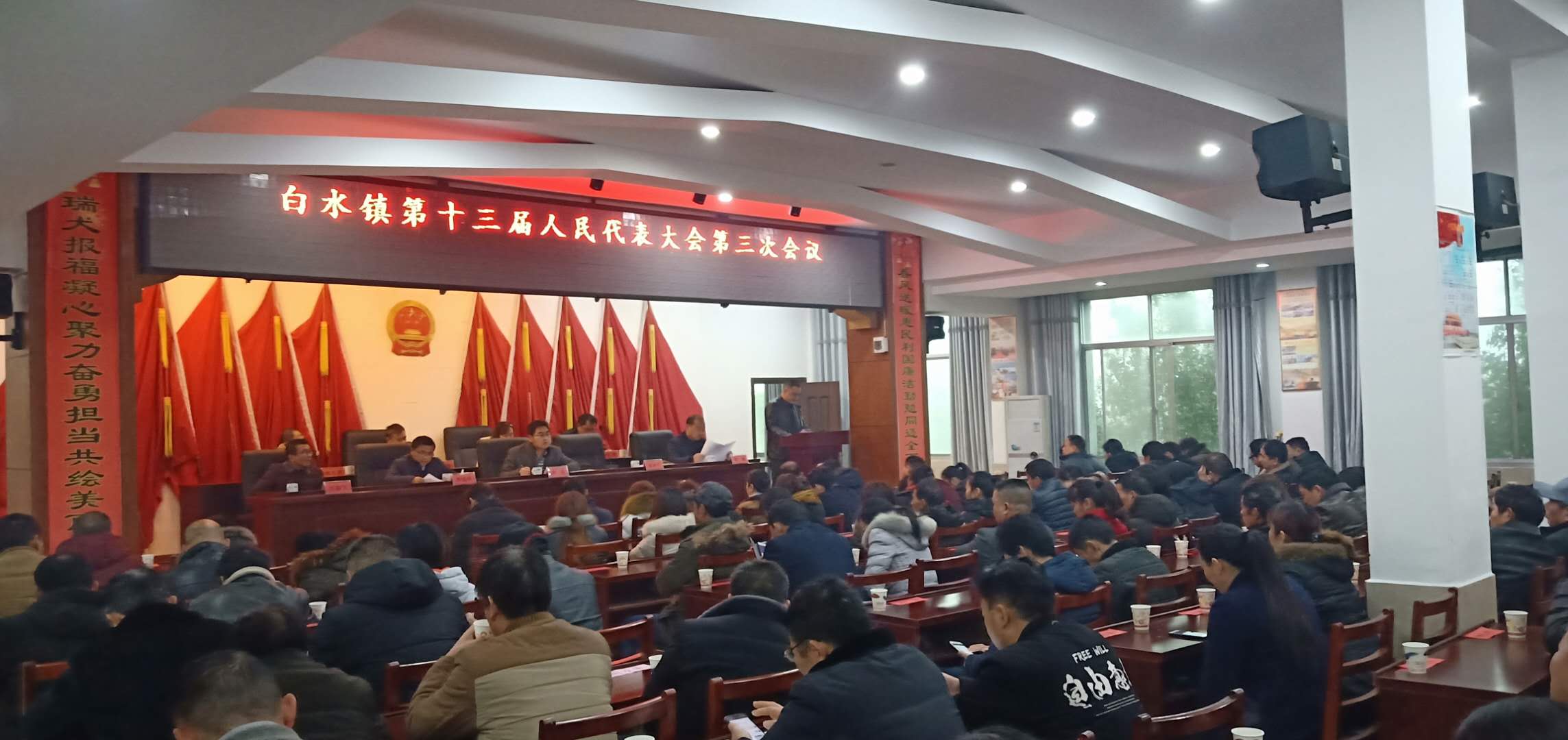 12月26日,白水镇第十三届人民代表大会第三次会议召开,58名镇人大代表和68名列席代表参加。会议审议通过了白水镇《政府工作报告》、《人大工作报告》和《白水镇2018年财政预算执行情况及2019财政预算的报告》,表决通过了《实施乡村振兴战略,创建湖南农旅休闲生态名镇的议案(草案)》以及各项决议(草案)。黄毅当选为镇人民代表大会主席。
