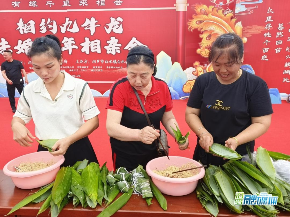 汨罗融媒体讯(记者 夏凡 通讯员 林佳璇)看演出、包粽子、玩游戏、相亲配对……6月8日至6月10日,白水镇九牛龙公园老少齐聚,热闹非凡。该镇白水社区在此举办“相约九牛龙 情定白水江”青年相亲及亲子活动,共同欢度端午。