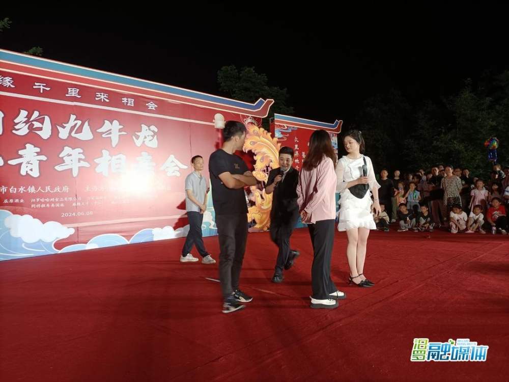 在6月9日晚举办的青年相亲活动中,来自白水及周边乡镇的青年男女大声说出自己的择偶标准和爱情宣言,在“红娘”的牵线搭桥下,不少青年勇敢向意中人表达心意。“活动不仅为我们提供了相识、相知的平台,更结交了一些朋友。”白水社区居民李先生说。