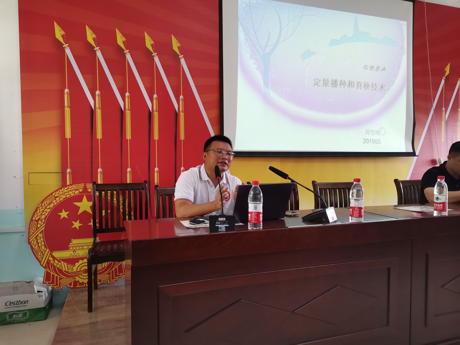7月28日,神鼎山镇开展水稻栽培技术培训会,邀请湖南农业大学水稻研究所博士生周雪峰等专家教授进行水稻育秧、水稻栽培、再生稻栽培管理技术讲课,50余名种粮大户集中学习“充电”。
