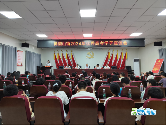 7月27日上午,神鼎山镇举行2024年优秀高考学子座谈会,108名被本科以上高等院校录取的神鼎山籍2024年大学新生齐聚一堂,分享学习经验、交流成长感悟。镇党政主要领导、学校校长及各村(社区)党总支书记参加会议。