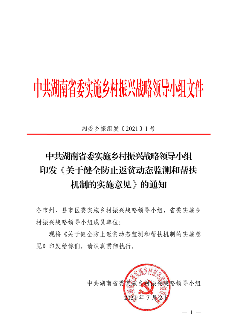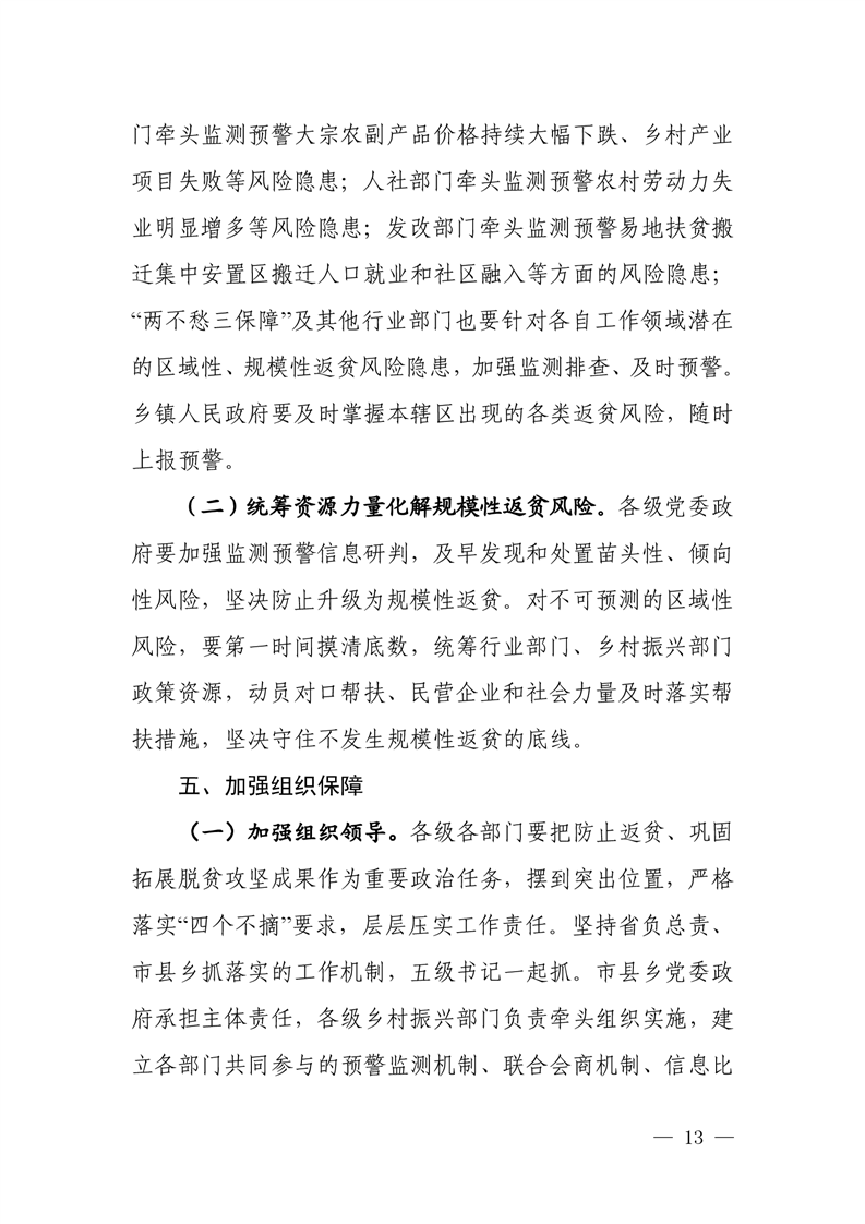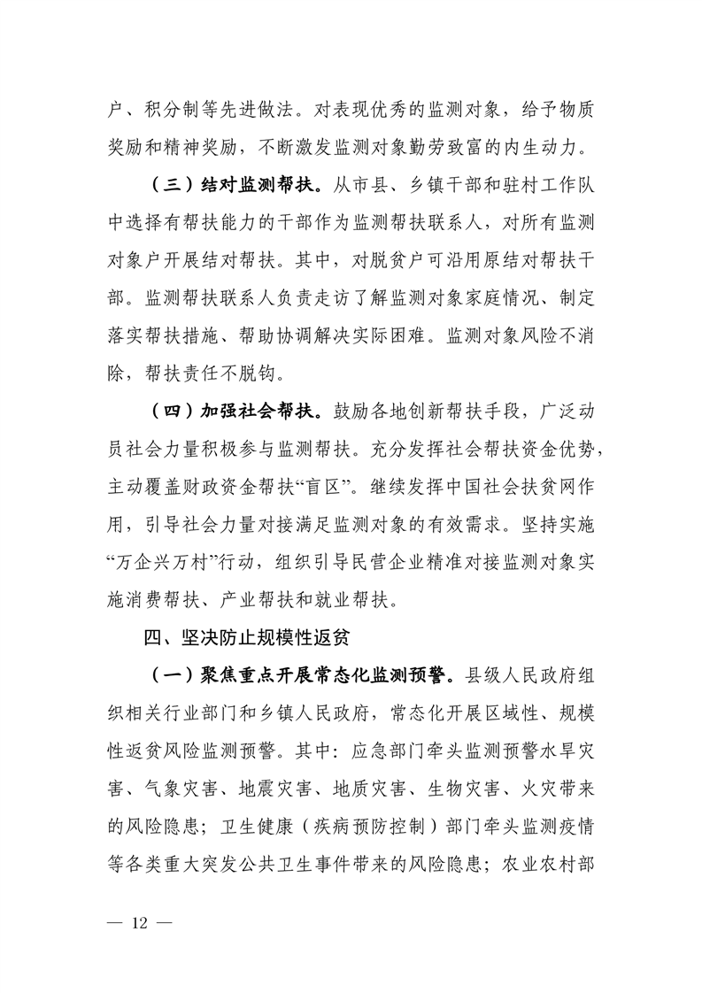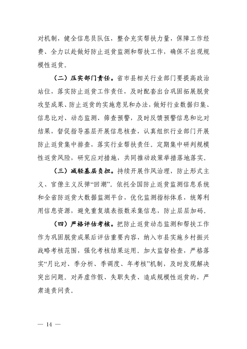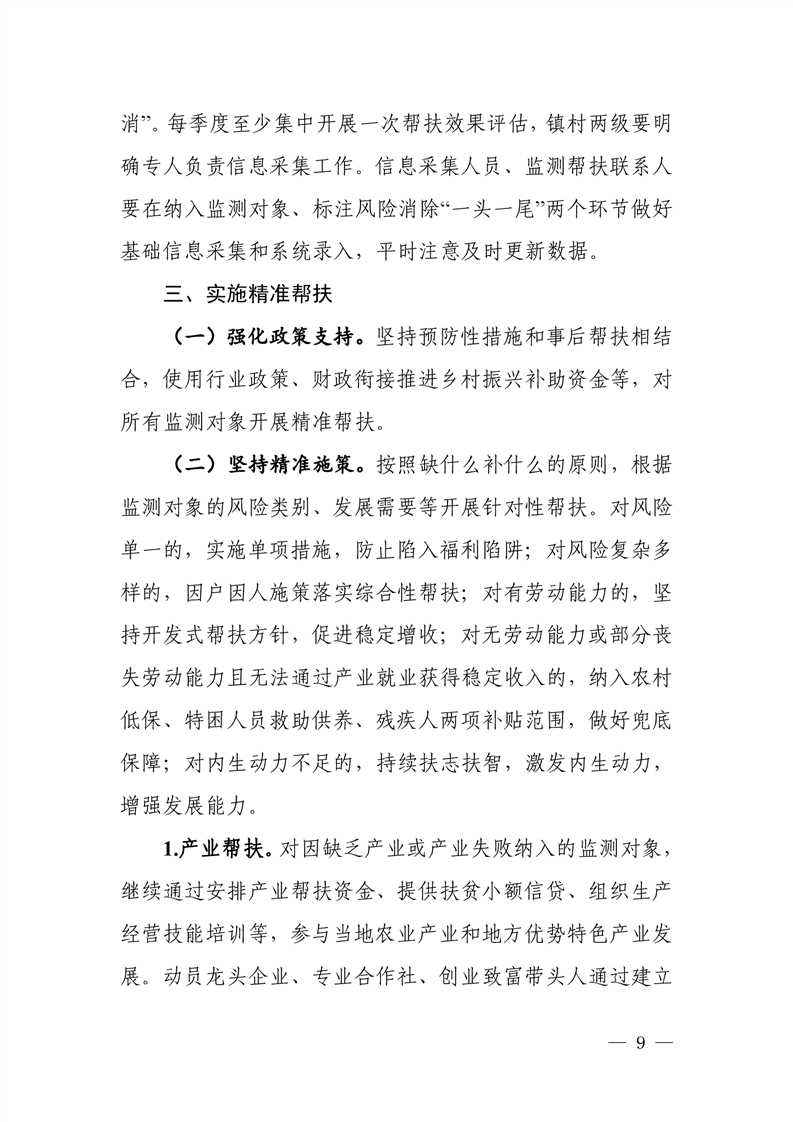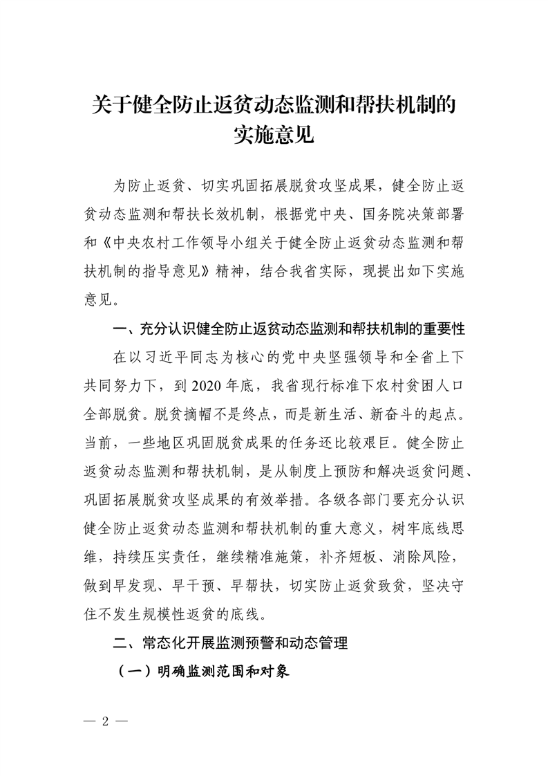 关于健全防止返贫动态监测和帮扶机制的实施意见