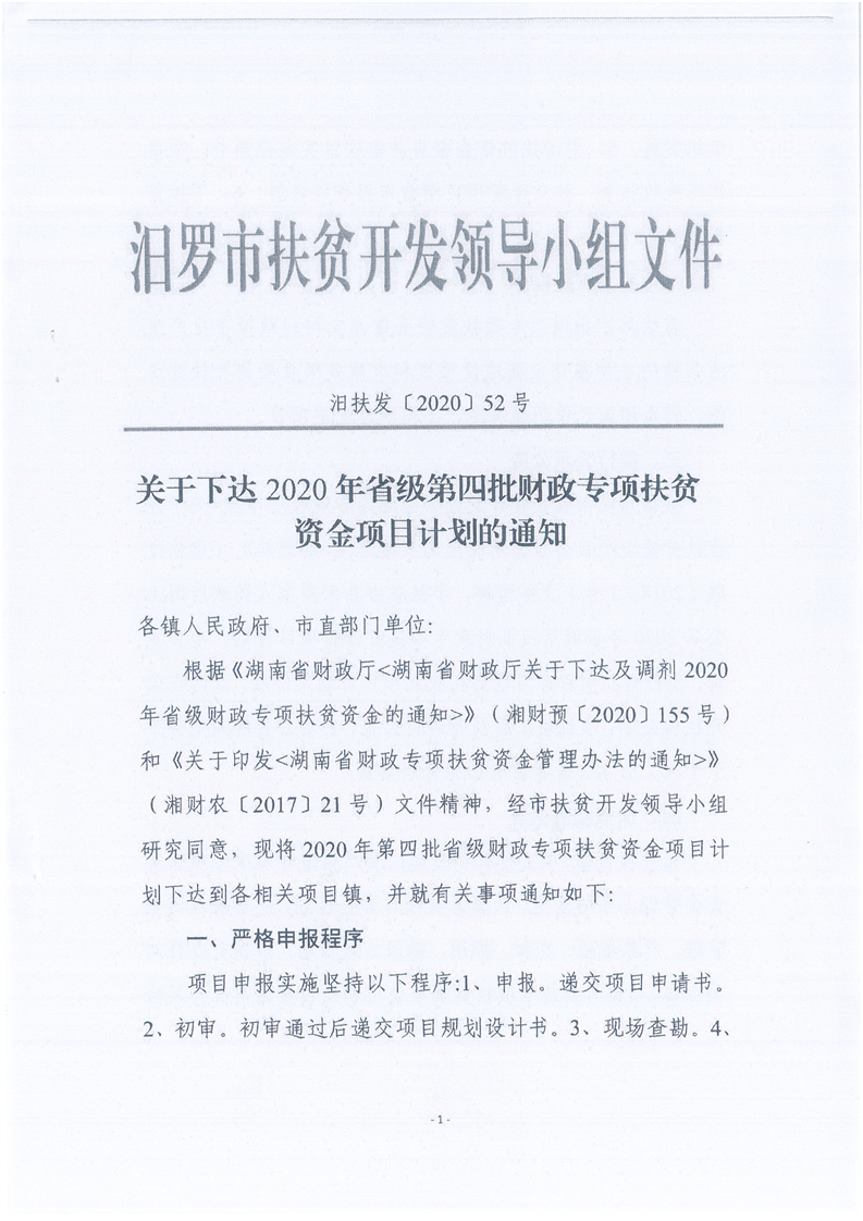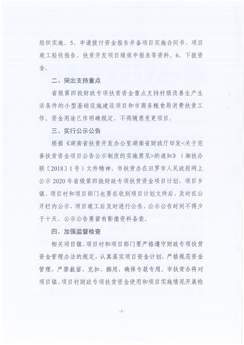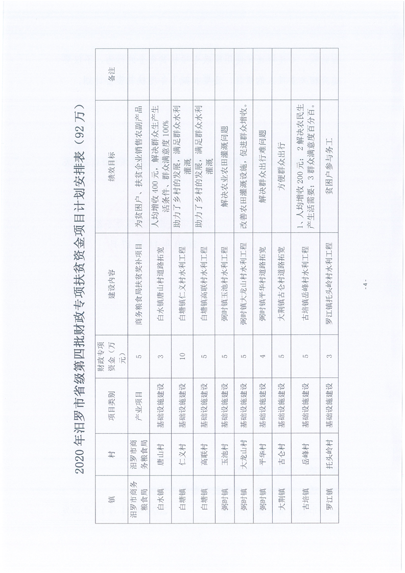 关于下达2020年省级第四批财政专项扶贫资金项目计划的通知