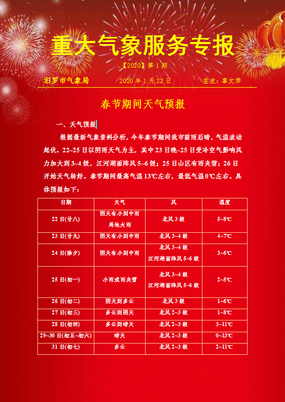 重大气象服务专报【2020】第1期