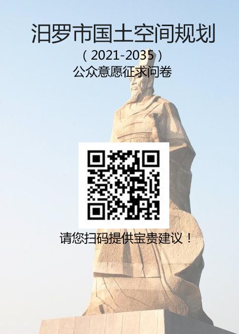 汨罗市国土空间规划(2021-2035)公众意愿征求问卷,请您扫码提供宝贵建议!