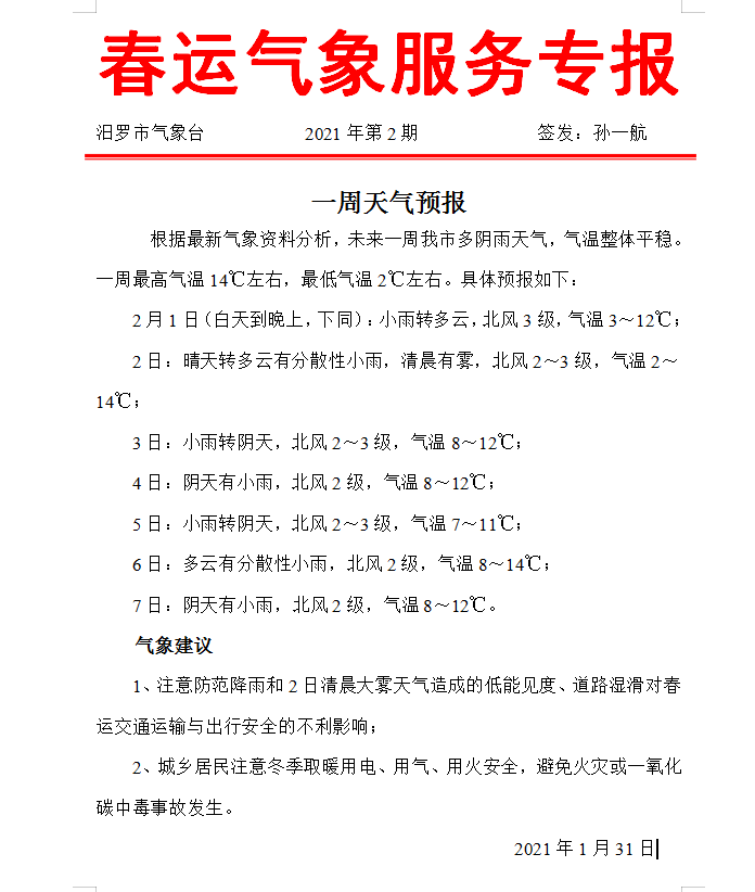 春运气象服务专报2021年第2期