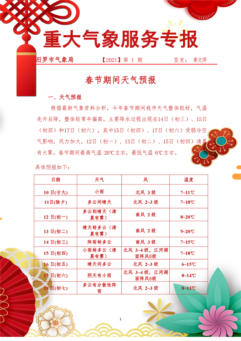 重大气象服务专报2021年第1期