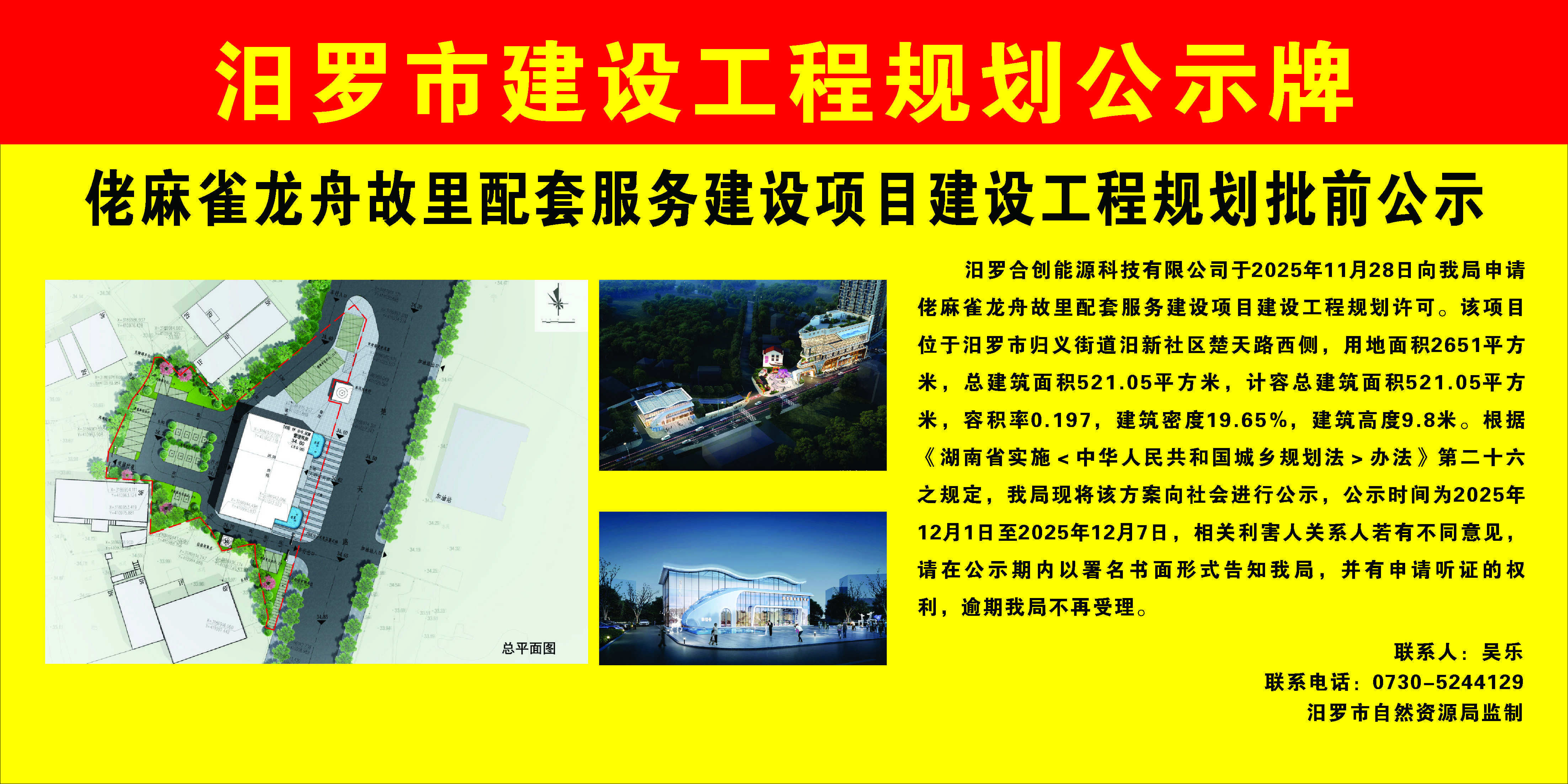 佬麻雀龙舟故里配套服务建设项目建设工程规划批前公示
