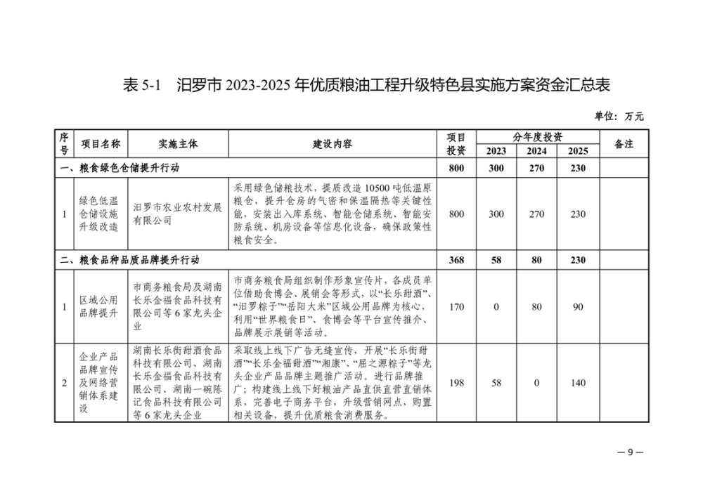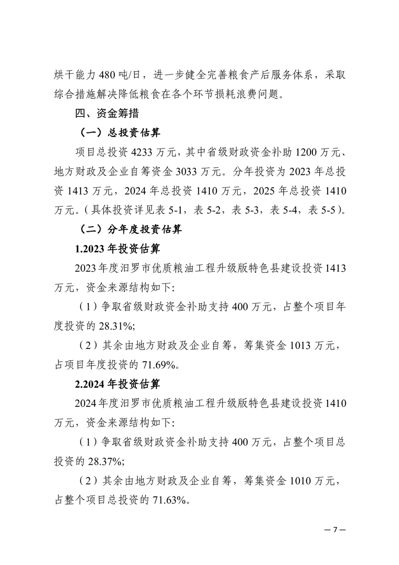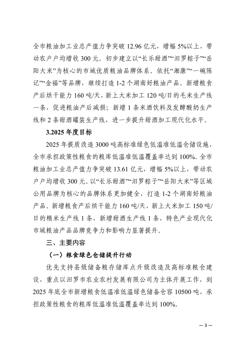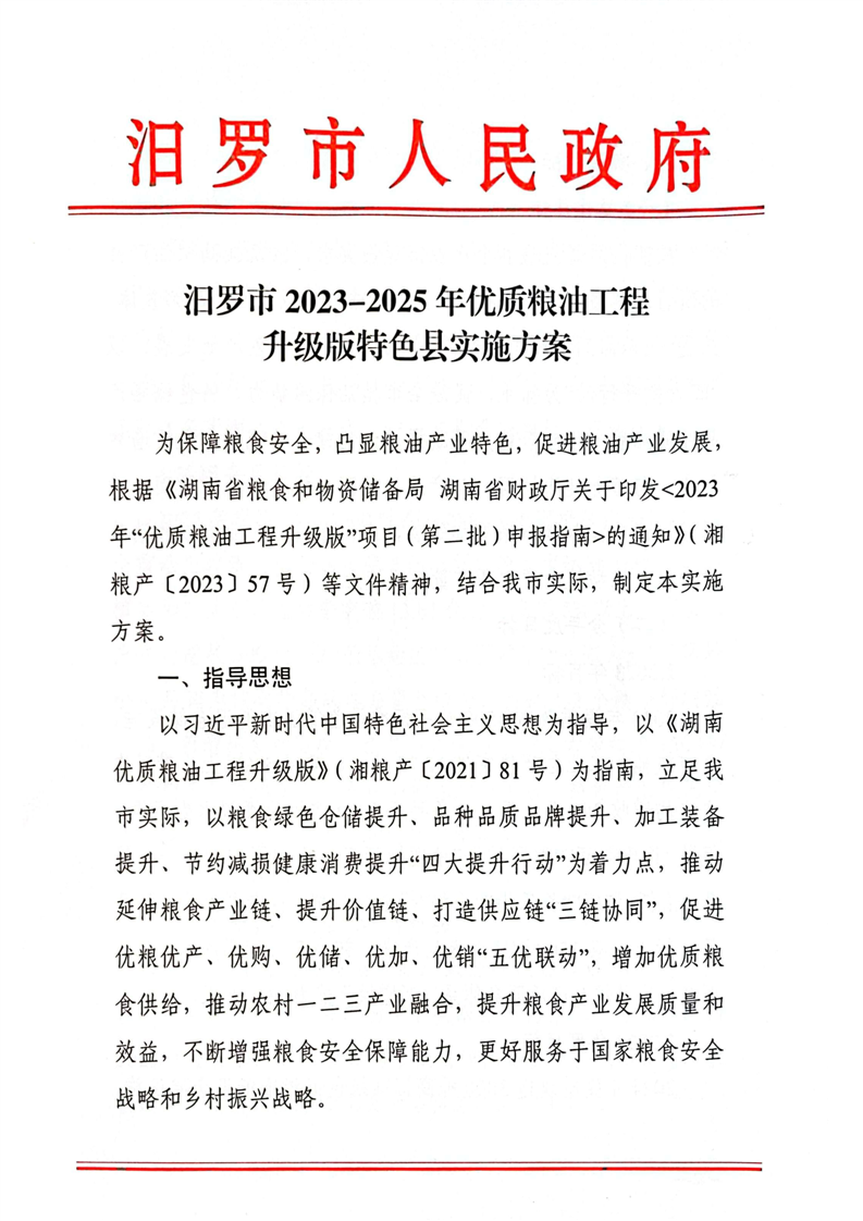 汨罗市2023-2025年优质粮油工程升级版特色县实施方案