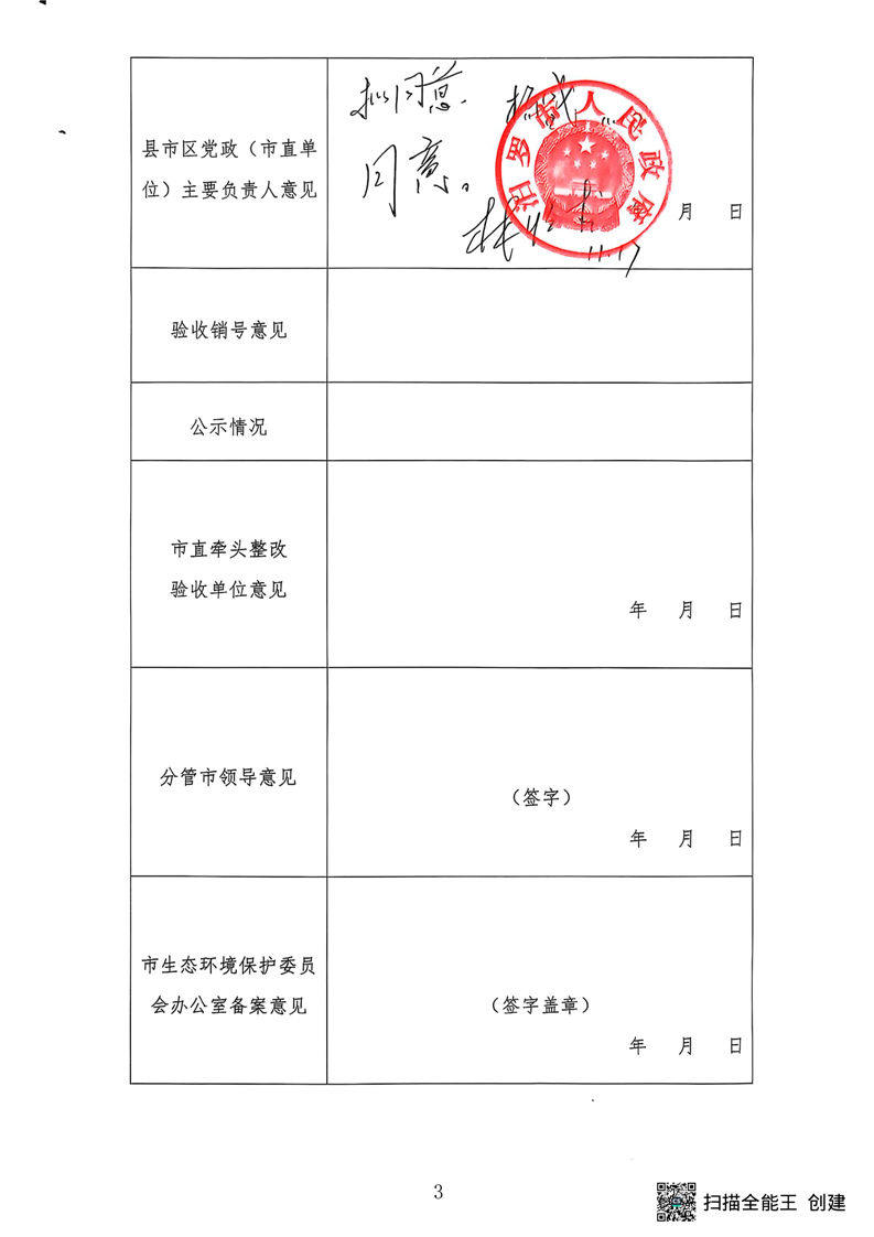 汨罗市省生态环境保护督察反馈问题整改验收销号登记表