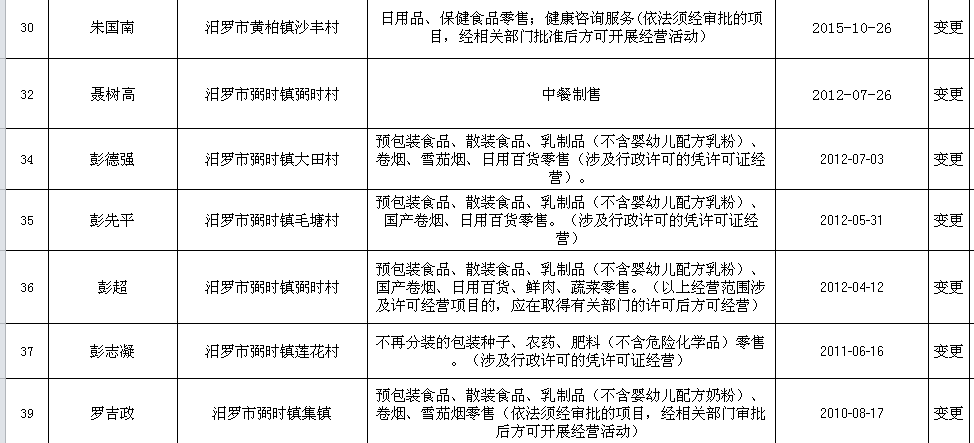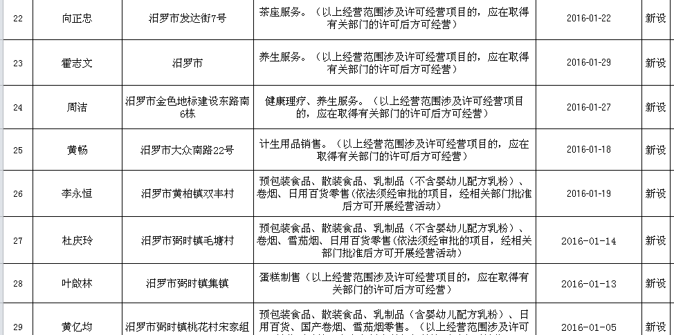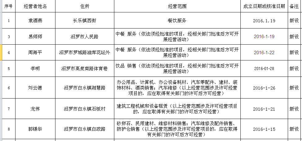 汨罗市工商局前置改后置个体工商户登记表(2016年1月)