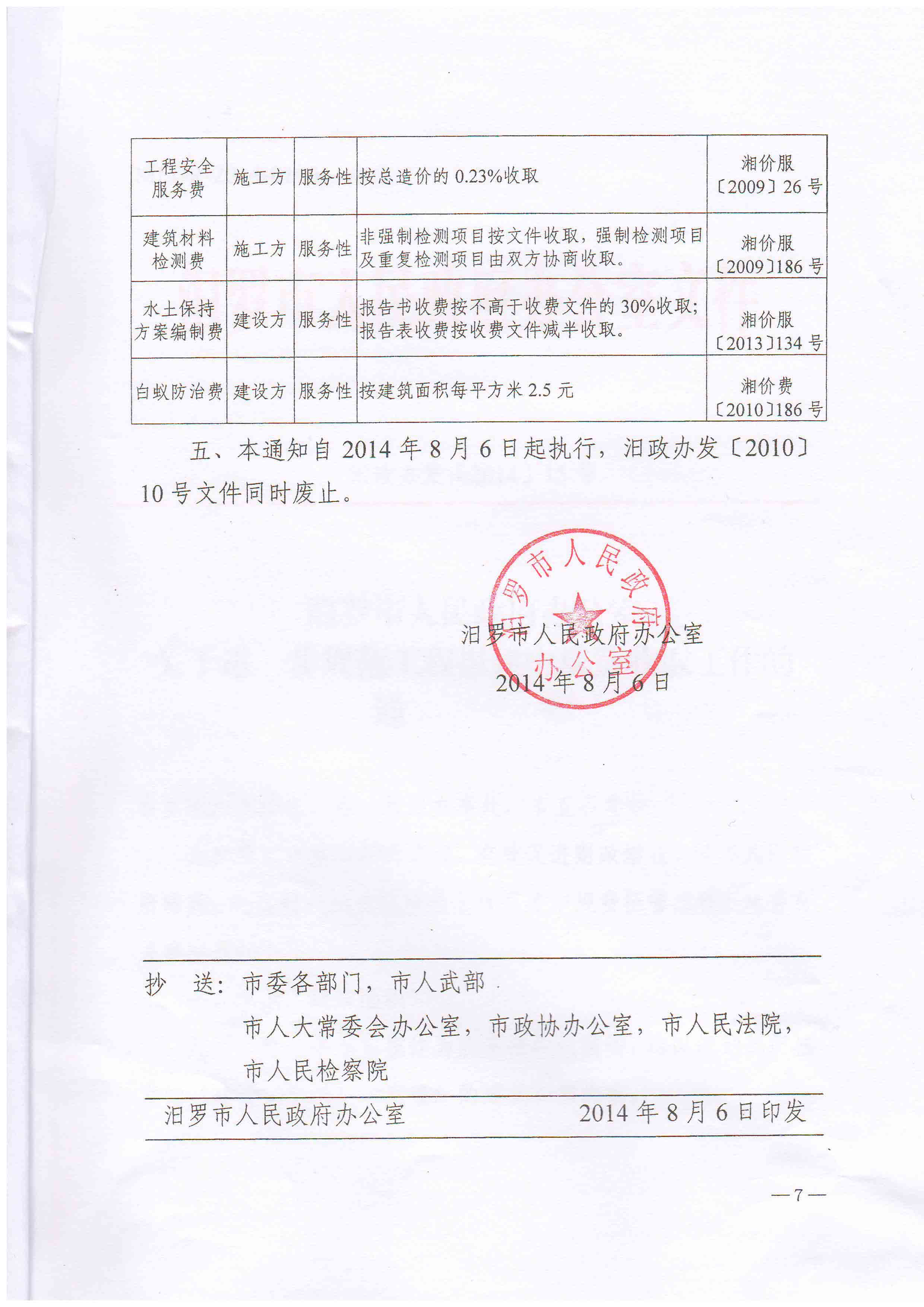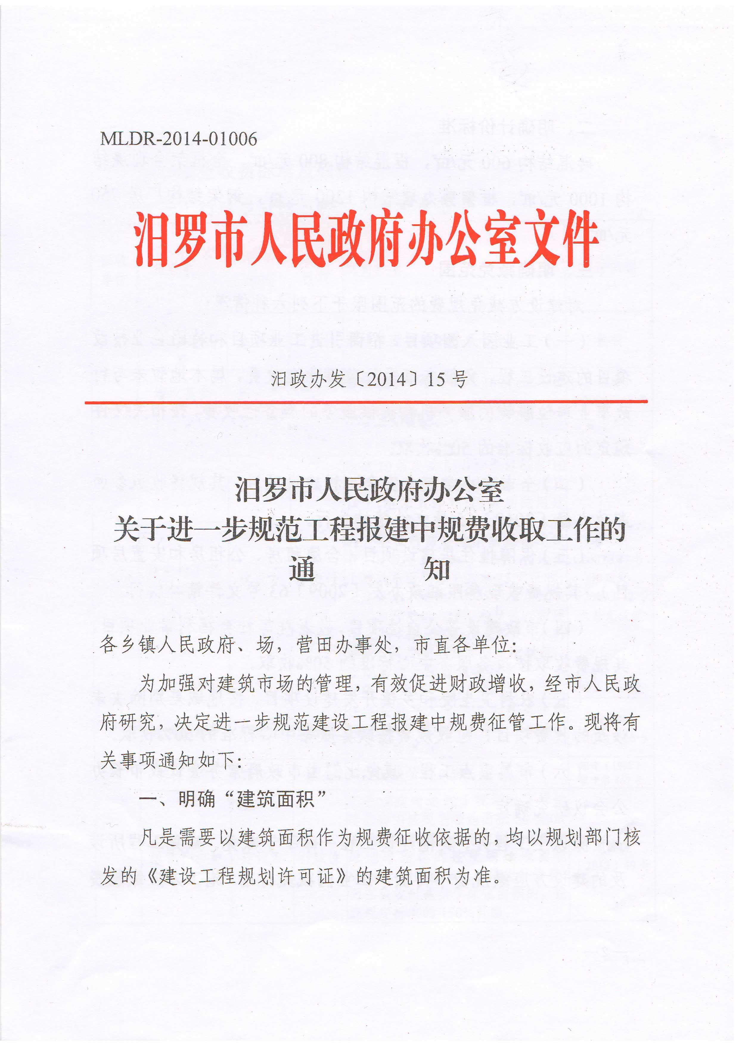 汨罗市人民政府办公室关于进一步规范工程报建中规费收取工作的通知