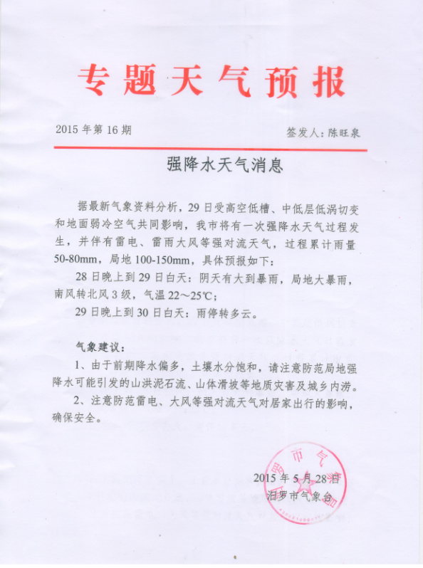 2015年5月28日专题天气预报