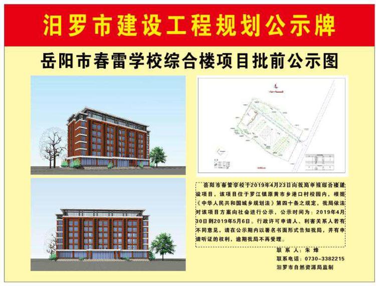 汨罗市建设工程规划公示牌(岳阳市春雷学校综合楼项目)