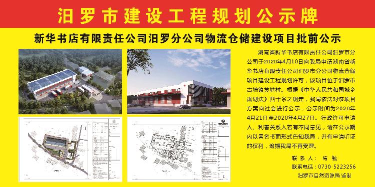 新华书店有限责任公司汨罗分公司物流仓储建设项目批前公示