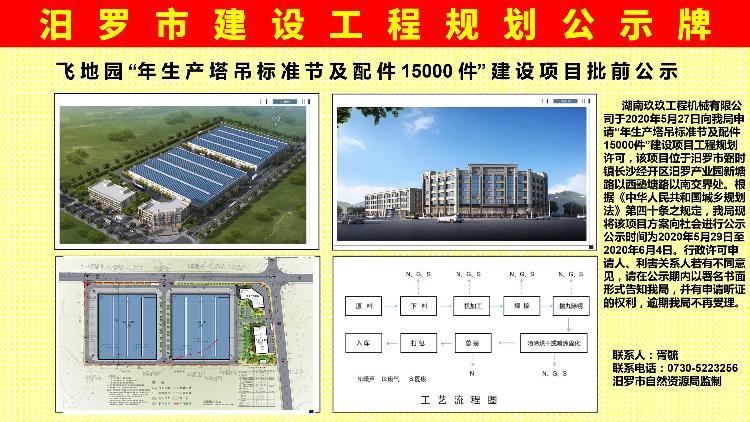 飞地园“年生产塔吊标准节及配件15000件”建设项目批前公示